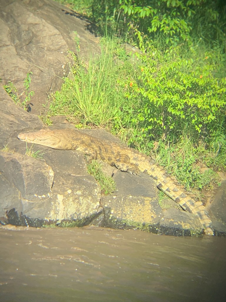 Alligator sunning in the banks of the Mara River. Thank heavens there was a rushing river between us & him!!