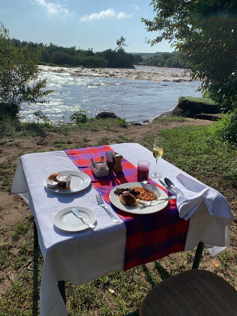 My breakfast table next to one of the rapids of the Mara River what an amazing way to start the day!!