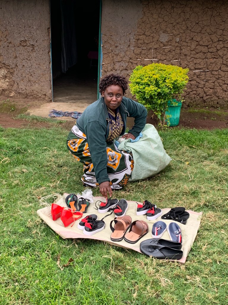 Next we drove to Dorice’s home. She sells new & used shoes from her home. Dorice travels via the night bus (12 hour ride) to Nairobi to buy shoes for her business and then returns to Moheto that next day. Traveling this way, she is able to avoid hotel charges in Nairobi. She usually purchases 100 pair of shoes at a time on these trips to Nairobi, bringing them home in a large cloth sack on the bus.