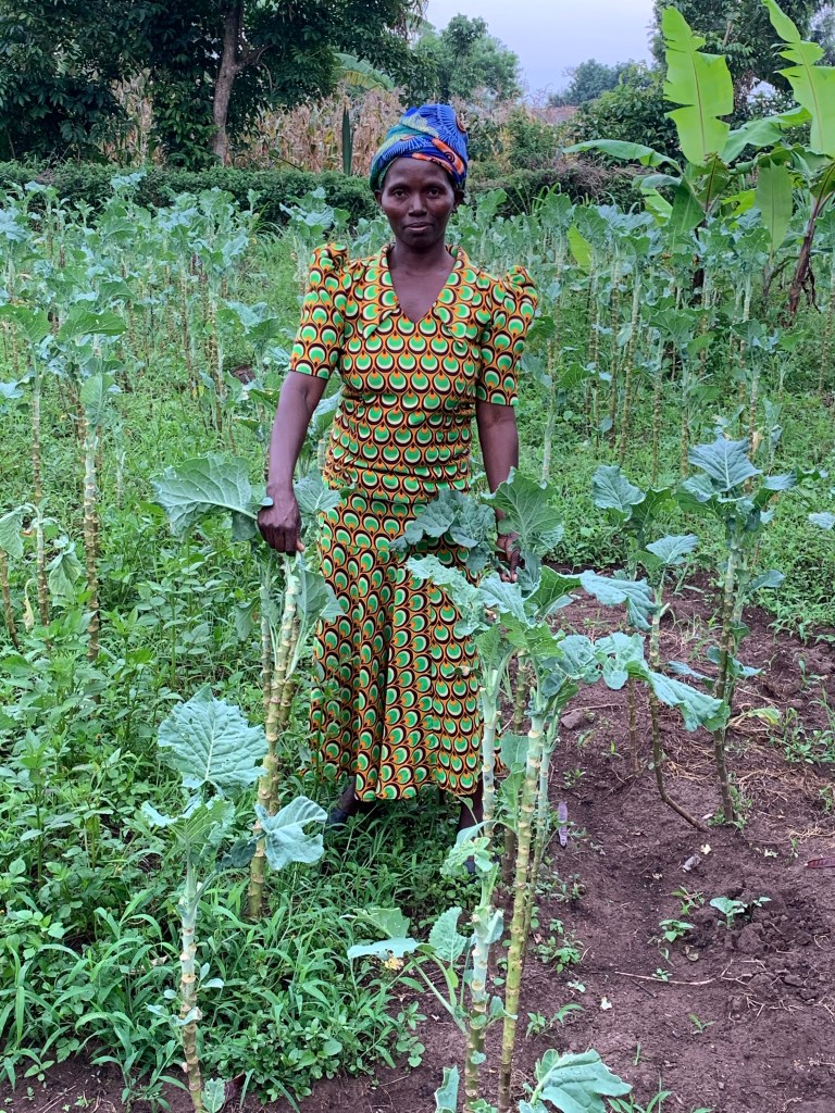 Eveline in her field of kale. These are the tallest kale plants I’ve ever seen! Eveline is ready to cut these down & replant the field with the small sucker plants that are on these tall stalks.
