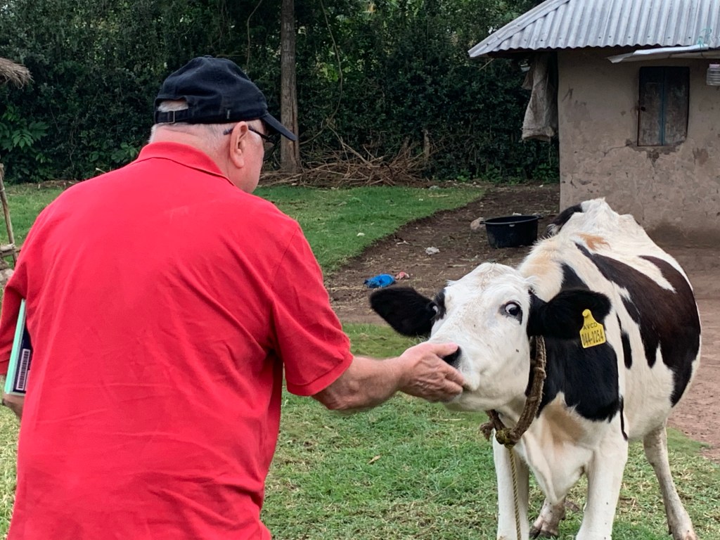 Steve making friends with Thomas’ cow, which was tied up in the front yard!