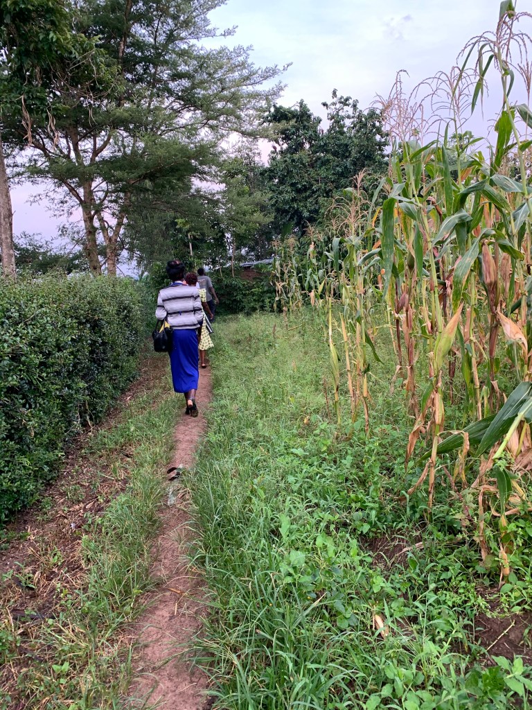 All of us walking the path from Evaline & Thomas’ farm to Eunice’s farm