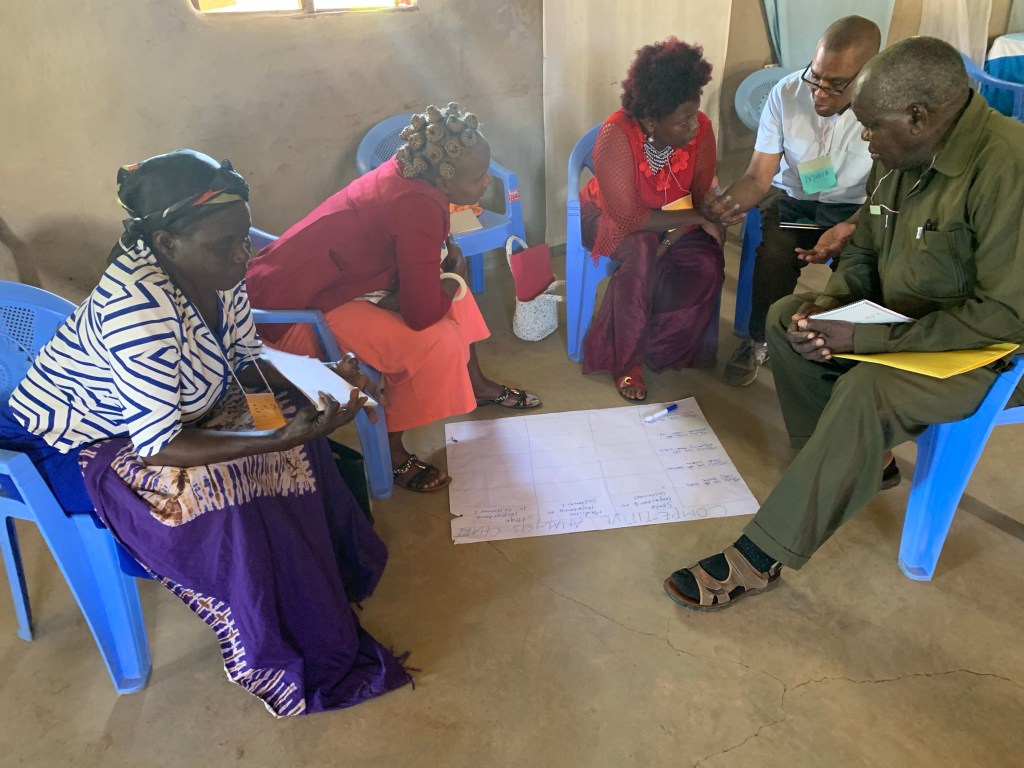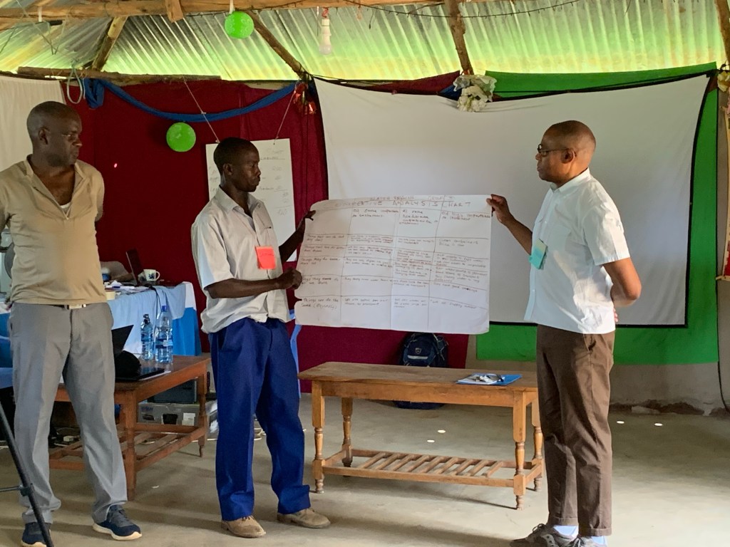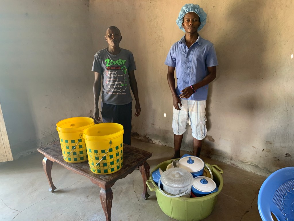 Everyday, we have tea twice a day – at 10:00 & 3:00. Tea in the morning is accompanied by great baked goods and/or boiled eggs and/or sandwiches. There has been a cook hired to cook for tea & to cook our lunch. A college student, William, is assisting in making the food. All of our food in Moheto has been so delicious! I’ve really appreciated the extent to which they have gifted me with vegetarian choices! Some of the food that we are eating has been purchased from some of the people we are training this week. We have several people in the class who are either farmers or vegetable sellers.